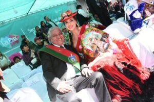 “Estamos cumpliendo el segundo año de ya declarado como Patrimonio (Inmaterial y Cultural de la Humanidad) por la Unesco. Entonces tenemos que sentirnos los bolivianos orgullosos de las cuatro esquinas de nuestro país. Hoy es día de fiesta, de devoción, de alegría y mucho color; nuestra Bolivia hoy está vibrando”, expresó la actriz a su llegada al palco, ubicado en la Av. Camacho.