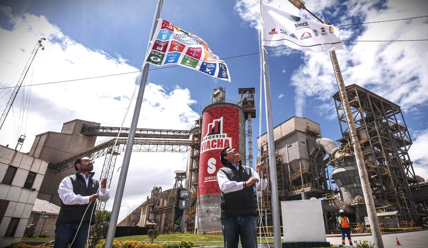Este miércoles durante un emotivo acto en la planta industrial de Viacha, donde resonaban los molinos de la enorme cementera, se pudo sellar la alianza con la presencia del Comité Ejecutivo de Soboce, la Directora de Pacto Global de Nacionales Unidas para Bolivia, medios de comunicación y familia Soboce, se procedió a la iza de la bandera de los Objetivos de Desarrollo Sostenible (ODS) que a partir de hoy flamea en la planta de cemento en producción más alta del mundo.