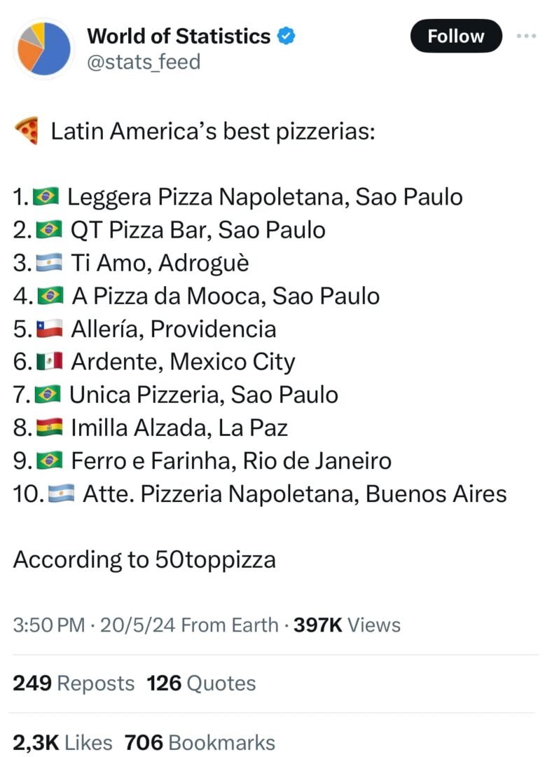 “Imilla alzada” es una pizzería boliviana reconocida en el top 10 de las mejores de Latinoamérica, está en el octavo puesto.