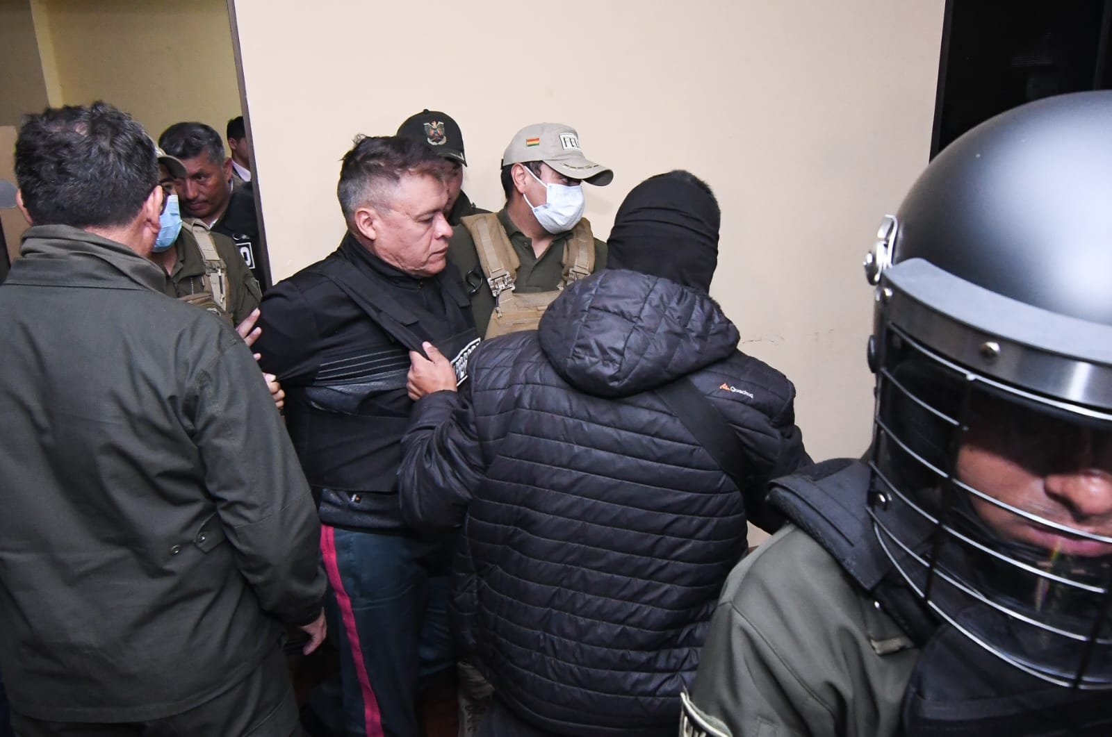 19.00 Zuñiga fue aprehendido por el viceministro Jhonny Aguilera y lo traslado a celdas policiales. Horas más tarde, Del Castillo lo presentó como aprehendido junto a tres personas involucradas ante el intento de Golpe de Estado.