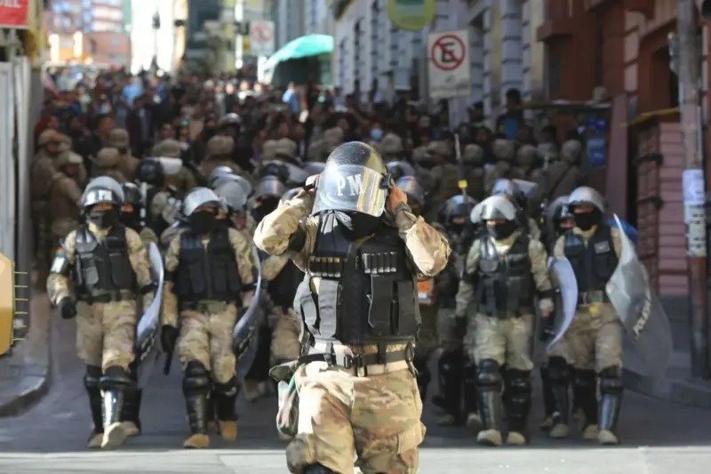 14.30 Contingentes militares llegaban a plaza Murillo en asonadas que llenaron de miedo a la población. Después las tanquetas se concentraban en alrededores del lugar e ingresaron hasta puertas de Palacio Quemado.