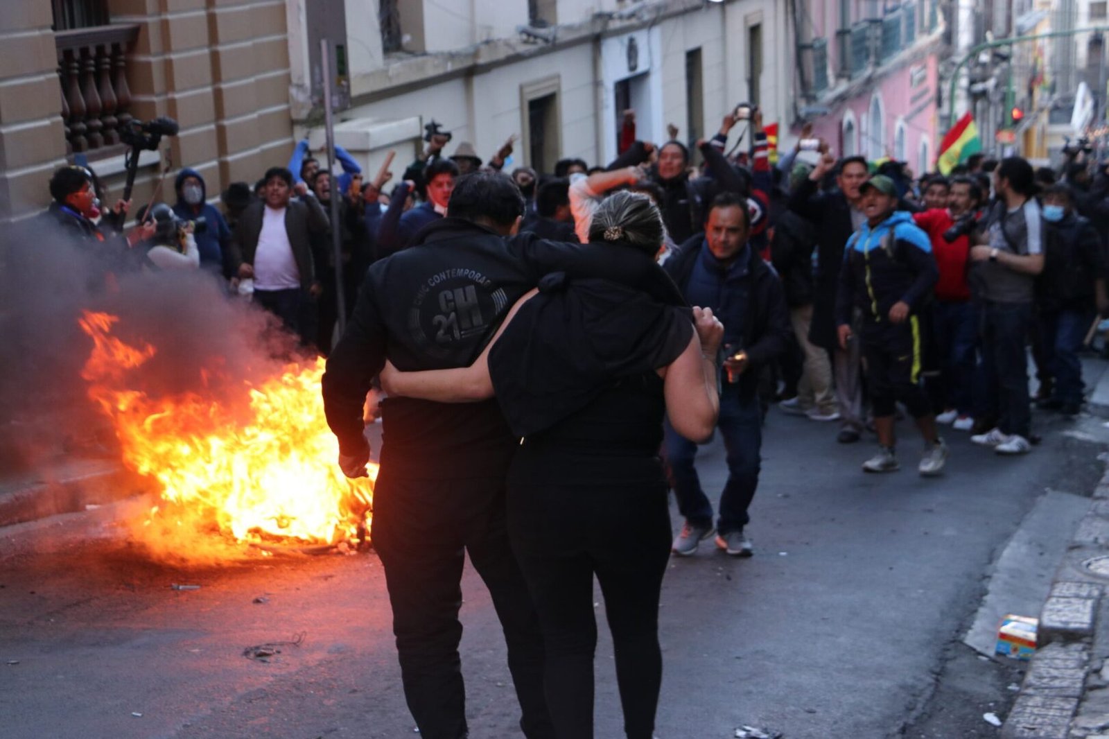 15.48 Una tanqueta en dos ocasiones trató de derribar la puerta al Palacio Quemado. El momento subió la tensión en la población debido a la fuerza del ataque pero aún no se tenía respuestas de nadie.