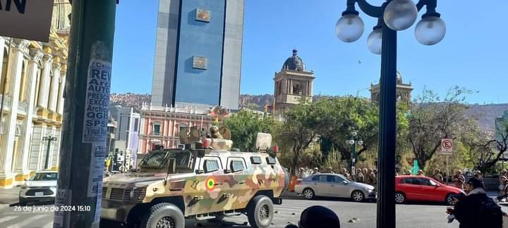Las redes sociales alertaron a la ciudadanía con las imágenes de algunos medios de comunicación por un movimiento inusual de los militares en kilómetro cero de La Paz la tarde del miércoles 26 de junio, no se entendía el porqué de los actos.