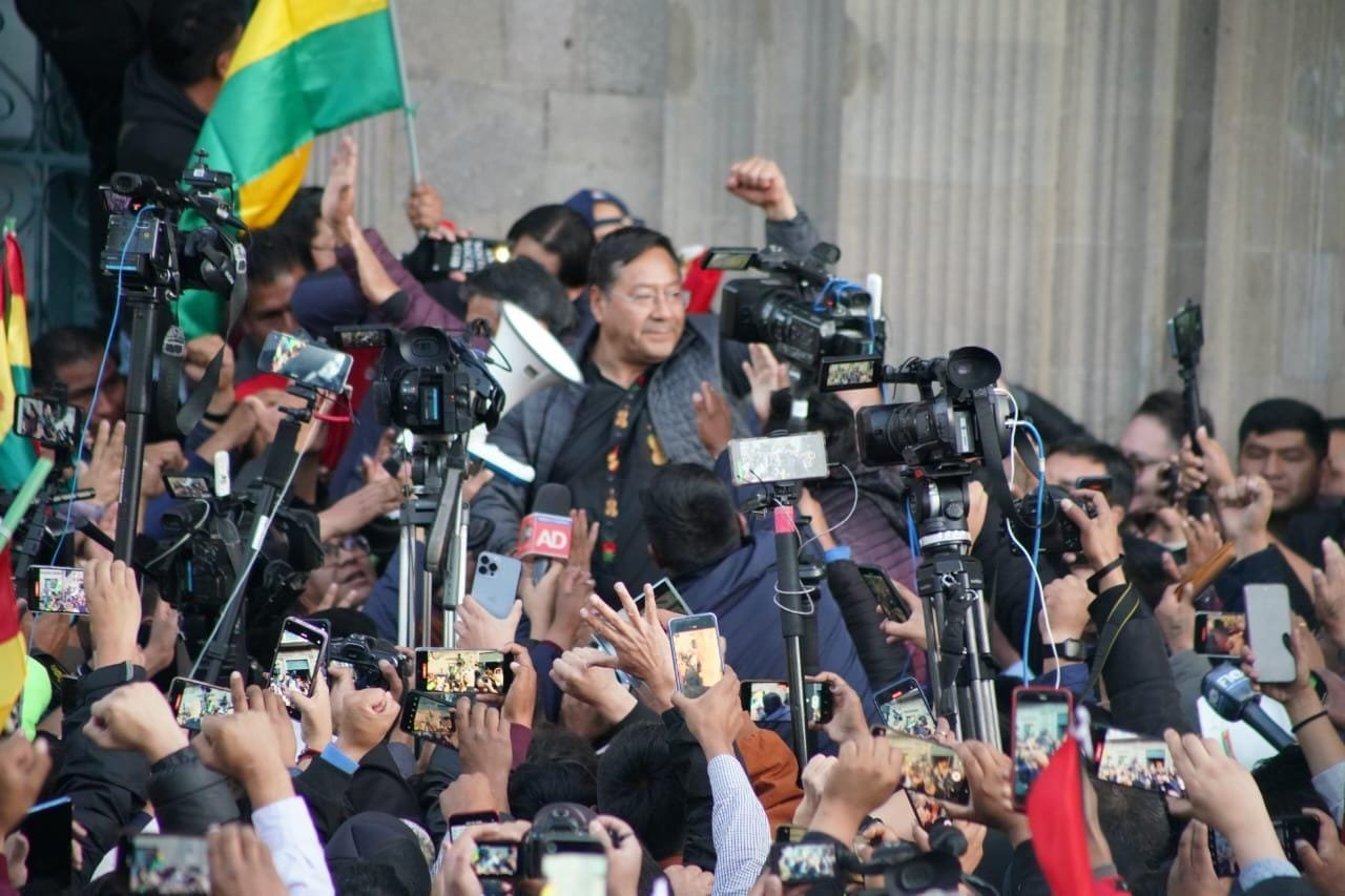 15.53 El presidente Luis Arce ya había puesto en sus redes sociales que algo inusual pasaba en plaza Murillo. Bajó, se enfrentó a Zuñiga quien salió de la tanqueta y cara a cara Arce le pidió detener a las Fuerzas Armadas y el repliegue de las tropas. Zuñiga respondió que no y dio media vuelta dirigiéndose a los medios de comunicación afirmando que “esto es por la molestia por el ultraje al Ejército, se debe recuperar la patria. Miren en qué crisis nos han dejado Las Fuerzas Armadas quieren reestructurar la democracia, no puede ser que de unos cuantos estén en el poder, un pedido que he recibido es la inmediata liberación de todos los presos políticos, no puede ser que personal subalternos estén presos por acatar una orden. Vamos a liberar a todos los presos políticos injustamente, desde Camacho, Añez, los generales, tenientes, coroneles, mayores, capitanes. Ese es el pedido de las Fuerzas Armadas, queremos restablecer la democracia, nuestros niños no tienen futuro, nuestro pueblo no tiene futuro. Basta de que unos cuantos se hayan adueñado del poder del Estado el pedido es que pronto recuperemos a los presos políticos”, sostuvo.