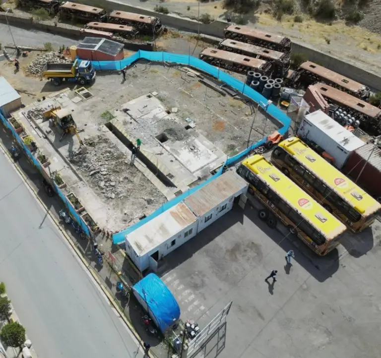 “Ya se han concluido los trabajos en lo que respecta a la obra gruesa y ya estamos empezando con la obra fina, el techado y la ampliación de las áreas de trabajo. Queremos resaltar que en este nuevo predio se están ampliando las áreas destinadas al mantenimiento de los buses”, enfatizó.