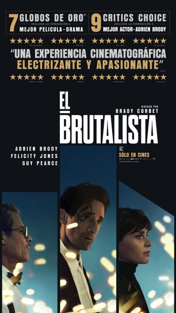 “El Brutalista, la ganadora en la categoría a Mejor Película de Drama, Mejor Director y Mejor Actor de Drama en los premios Globo de Oro 2025, es una de las grandes apuestas para ganar los presentes premios Óscar. La película que significa el gran regreso de Adrien Brody a la pantalla grande nos invita a conocer la historia de un arquitecto sobreviviente del Holocausto quien está en busca de una vida nueva luego de verse obligado a dejar a su esposa en otro país”, comenta Sandra Cortez, gerente de marketing de Andes Films, distribuidora de la cinta en Bolivia, añadiendo que, la película tuvo locaciones en Hungría e Italia aunque una parte importante de la historia se desarrolla en Filadelfia, Estados Unidos, en la década de 1940.