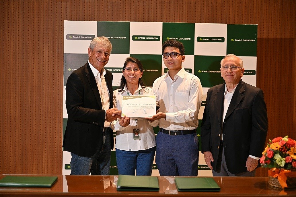 En una ceremonia celebrada en la nueva sede central de Santa Cruz, el Banco distinguió a Javier Alejandro Caye Cabrera, de 18 años, como el primer beneficiario de su programa de becas, cumpliendo con todos los requisitos establecidos. “Recibir esta beca significa mucho para mí. Es un impulso para seguir esforzándome y dar lo mejor en mi formación profesional. Agradezco al Banco por creer en mi potencial y brindarme esta oportunidad para construir mi futuro”, expresó con emoción.