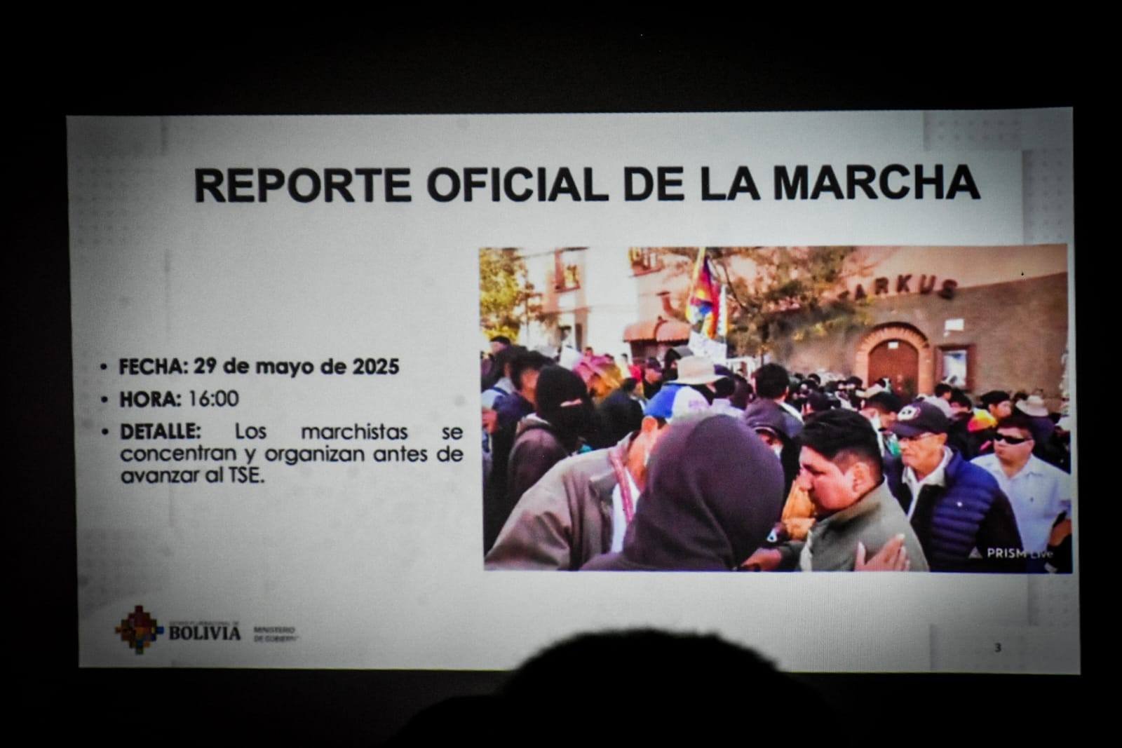 Ante el anuncio de más movilizaciones de los seguidores de Morales, el ministro advirtió que se continuará precautelando la paz y seguridad de la población en la ciudad Sede de Gobierno.