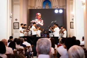 Al finalizar el conversatorio, los invitados a la presentación del libro pudieron disfrutar de un concierto a cargo de la Orquesta de Cuerdas Yaguarú, cuyos integrantes llegaron desde la provincia Guarayos, a 340km al norte de la capital cruceña, para deleitar con música sacra. Al concluir esta presentación, la orquesta fue ovacionada de pie.