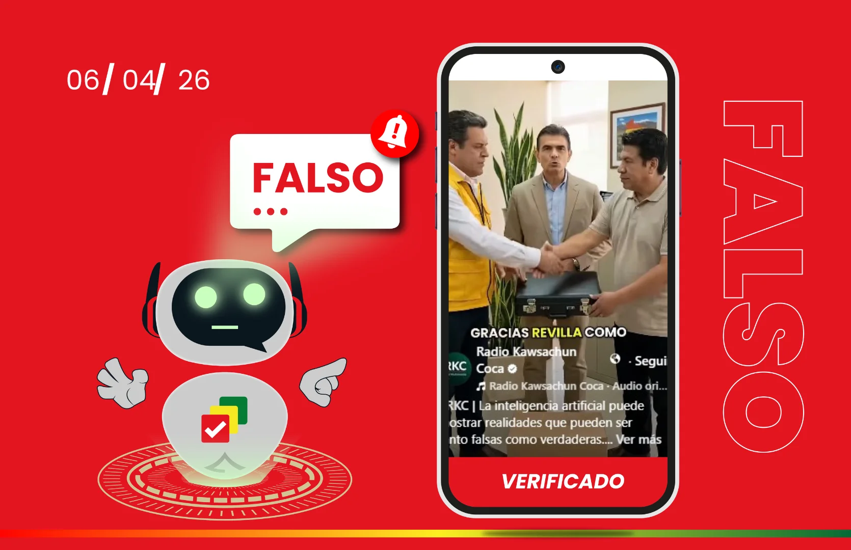 Por lo tanto, el video difundido por Radio Kawsachun Coca es falso. Se trata de un contenido generado con inteligencia artificial que construye una escena inexistente entre Rodrigo Paz, Luis Revilla y Edgar Uriona.