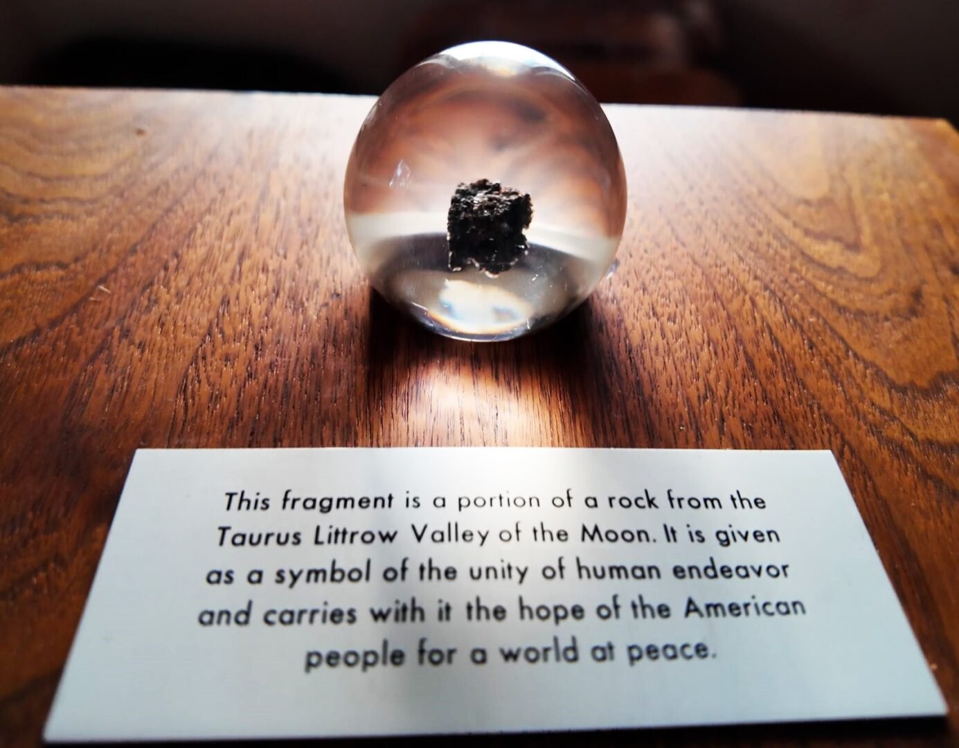 En diciembre de 1972, la misión Apolo 17 llevó banderas de distintos países hasta la Luna. A su retorno, la NASA entregó a cada nación su bandera y un pequeño fragmento de suelo lunar, como recuerdo de ese hito. En Bolivia, este recuerdo llegó en 1973 y fueron recibidos por el entonces presidente Hugo Banzer, quien dispuso su entrega a la UMSA, institución que desde entonces los conserva como parte de su patrimonio científico.